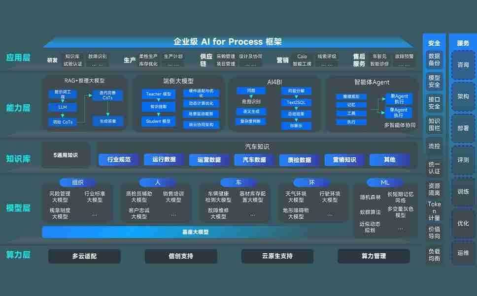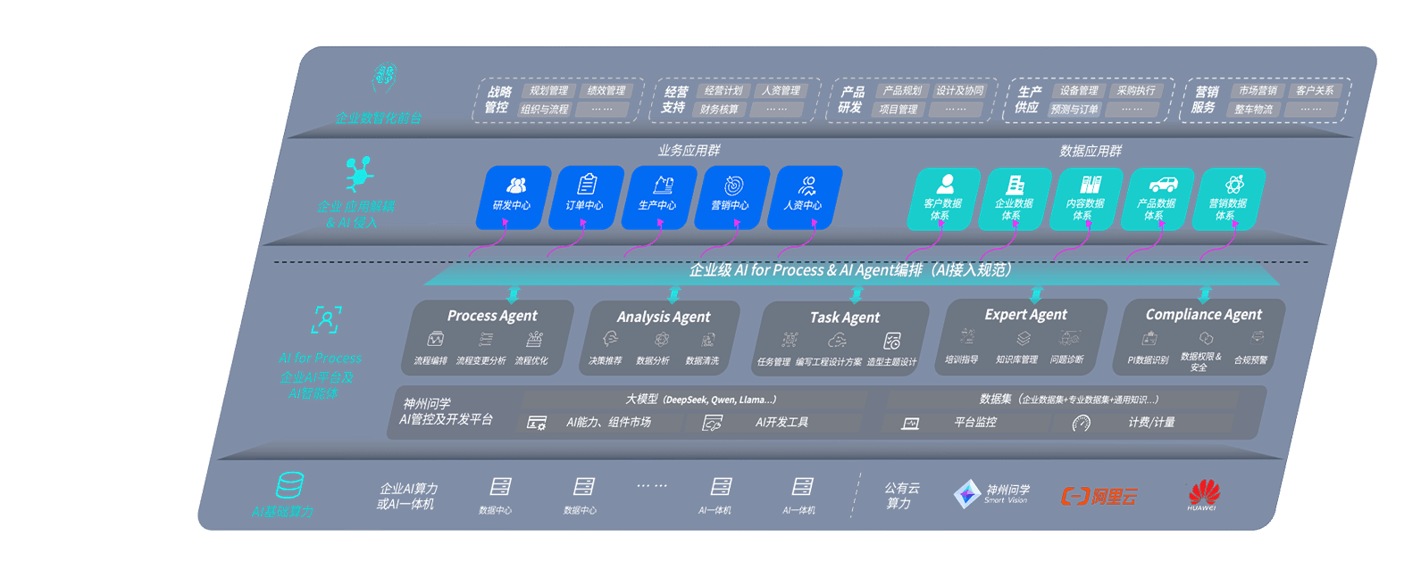 意昂2问学智车解决方案是一套基于AI技术的汽车行业智能化系统,,覆盖从底层算力到顶层AI应用的全栈方案。。。方案由算力层、、、、模型层和应用层组成:算力层,,,,方案支持多种一体机配置,,,,具备云端灵活部署、、多云适配以及动态优化计算资源的能力;模型层,,意昂2问学平台版提供了企业级AI应用一站式构建与管理平台,,支持基于后训练强化技术的汽车企业专属模型的训练、、、、评测和运营;应用层,,意昂2问学DeepSeek版提供包括超级员工、、、智能招采、、、智能营销、、智能客服、、、AI for BI等一系列解决方案,,可助力汽车行业实现数字化转型,,,让管理更智能、、响应更敏捷。。。