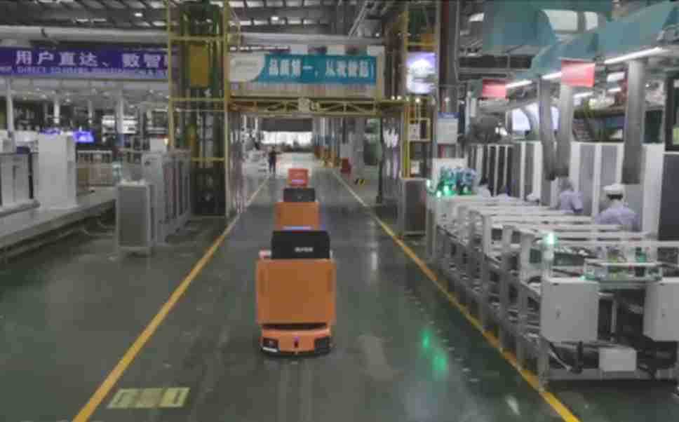 为车载冰箱物流配送打造的智能解决方案,,包含产中物流通过潜伏举升AMR搬运至线边,,,产后成品物流智能仓储,,流程包含产中物流智能齐套入库,,线边安灯叫料AMR智能配送至线边,,成品入库、、、、出库,,,通过无人堆高车机器人,,,智能仓储管理替代人工作业管理,,,,实现更高存储、、、更高效率、、更具柔性化的解决方案。。